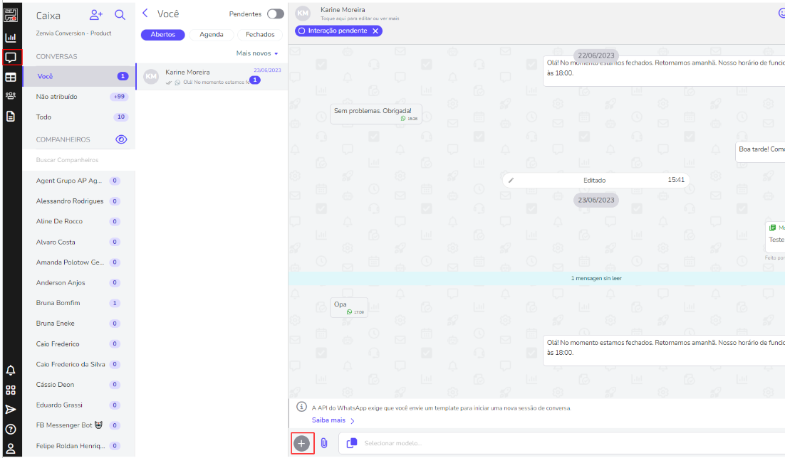5- De nuevo en Zenvia Conversion, activa la opción para enviar la plantilla automática que desees. Podrás utilizar cualquiera de las plantillas que ya hayas activado previamente en tu línea.