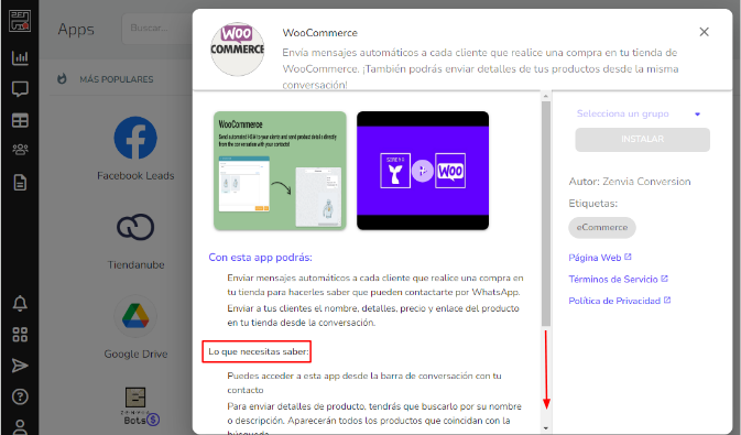 1 - Ve a Integraciones y haz clic en el ícono de WooCommerce: