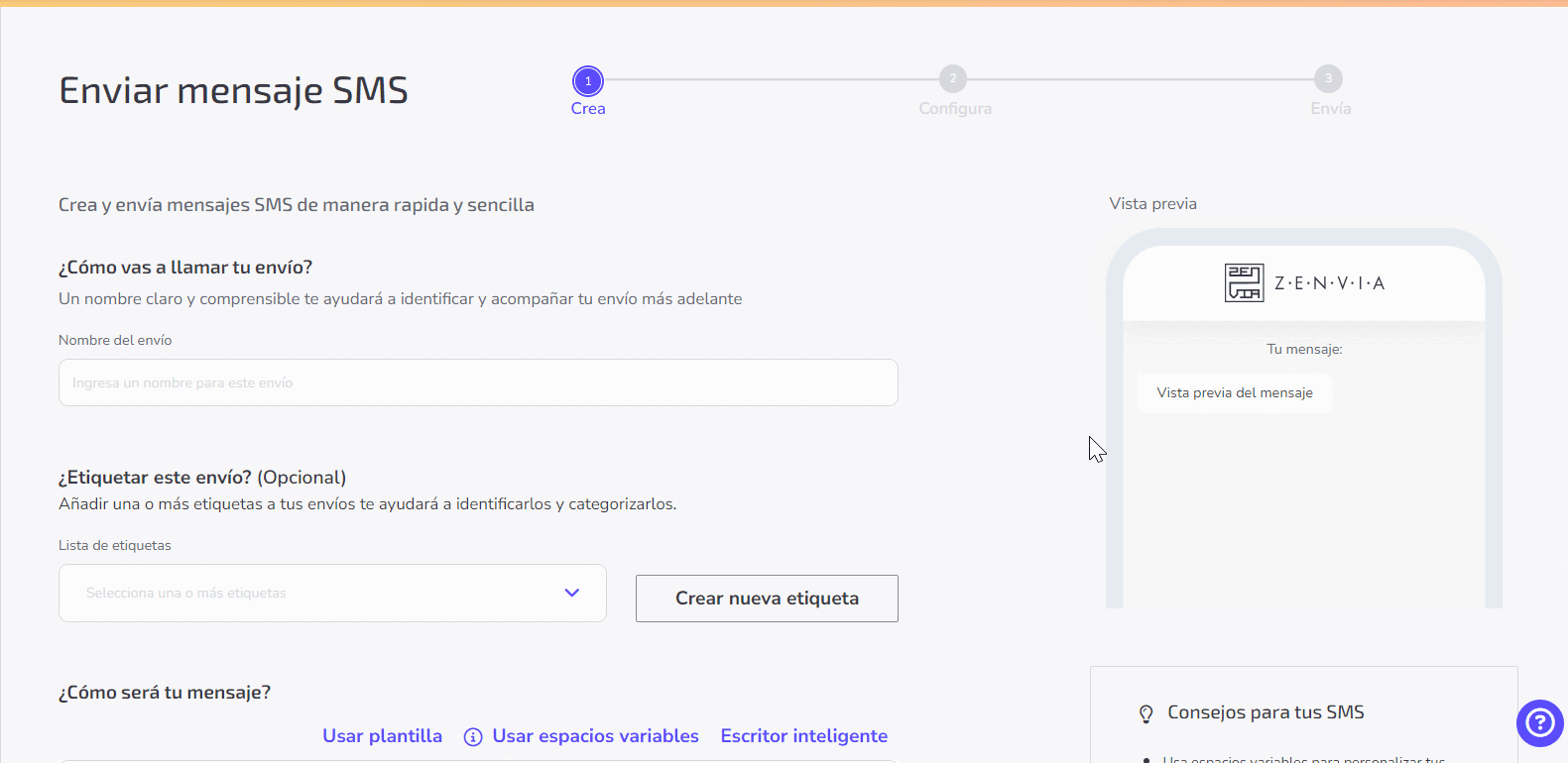 2. En la primera etapa, la de creación, haz clic en Crear nueva etiqueta;