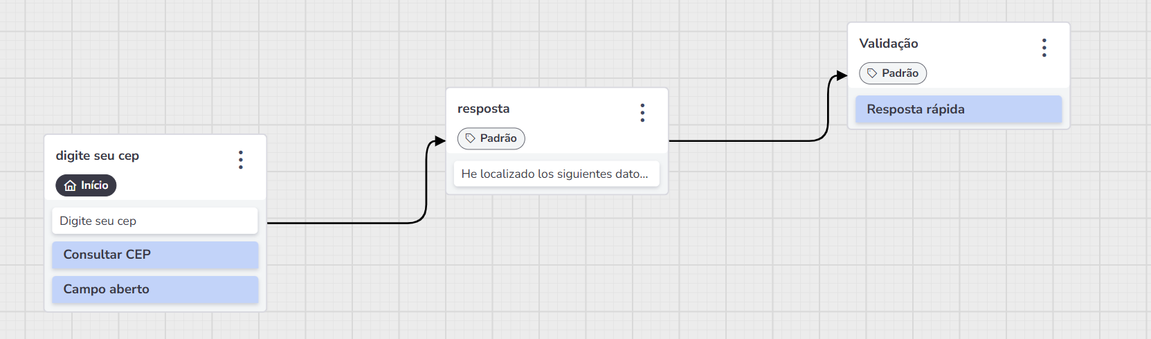 Para que el chatbot pueda recibir el CEP ingresado por el cliente, es necesario incluir en el mismo bloque un Campo abierto, que servirá para recolectar esta información antes de realizar la consulta.