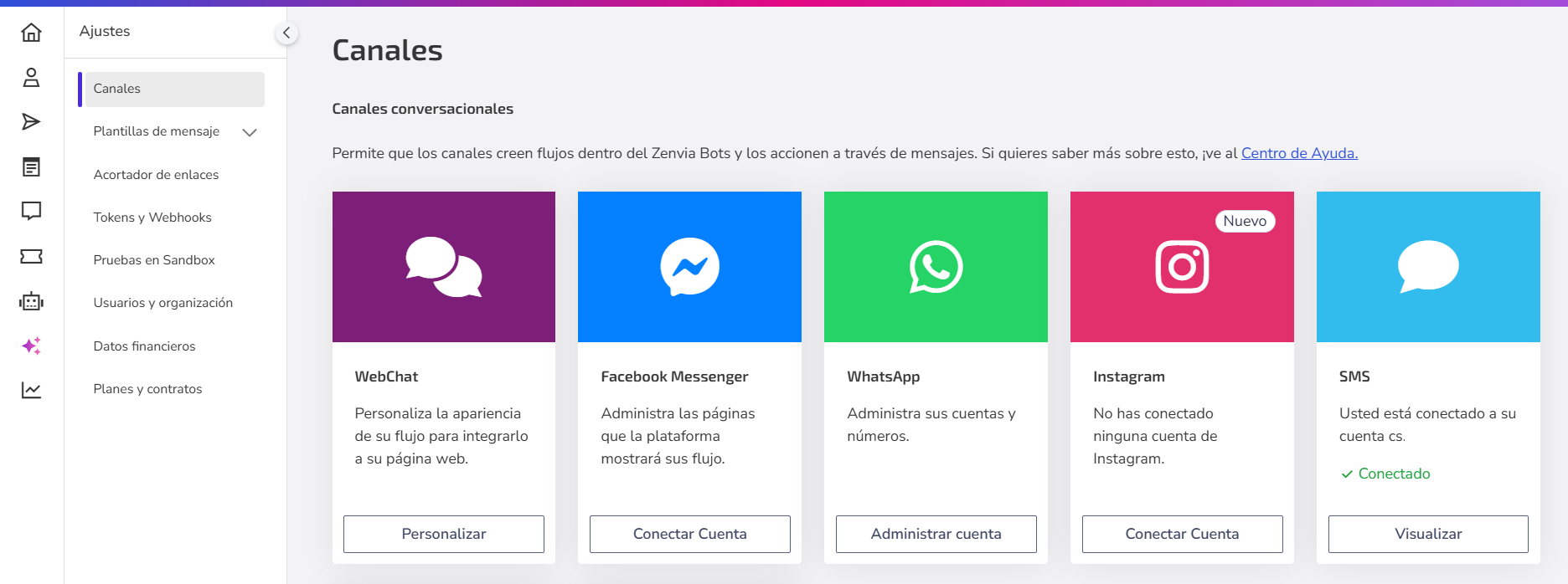 En Zenvia Customer Cloud, la activación del canal SMS es automática en cuanto se contrata un plan, sin necesidad de configuración manual.