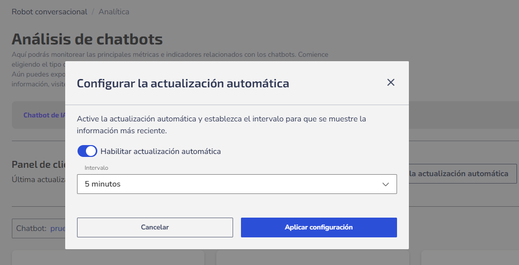 • Chatbot: Selecciona el chatbot que deseas analizar.