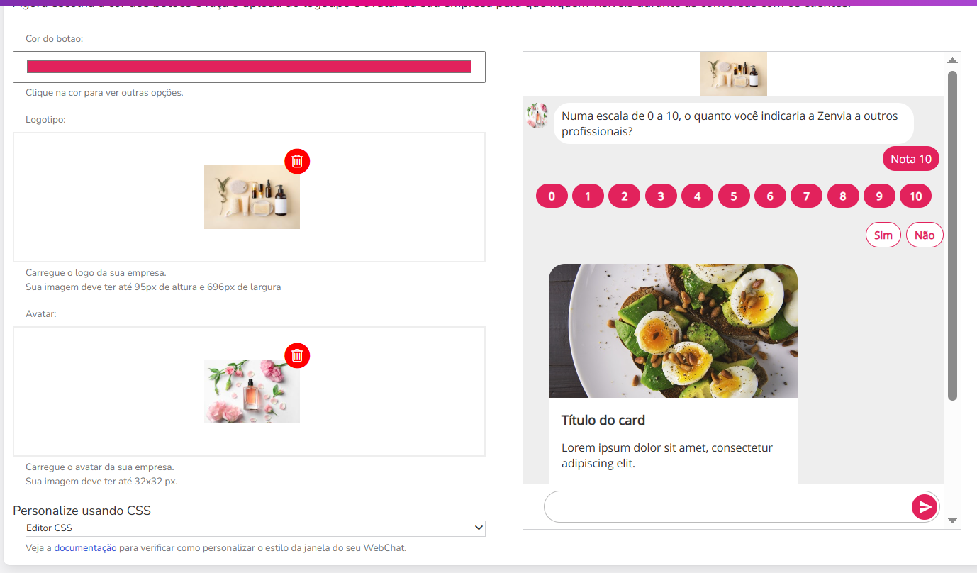 - Editor CSS (opcional): usa CSS personalizado para adaptar el WebChat a tu estilo visual.