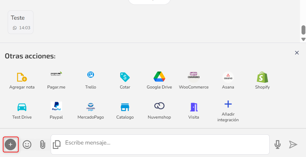 Para que las aplicaciones aparezcan y funcionen en las acciones de la bandeja de entrada, deben estar integradas previamente en el menú Ventas > Integraciones.