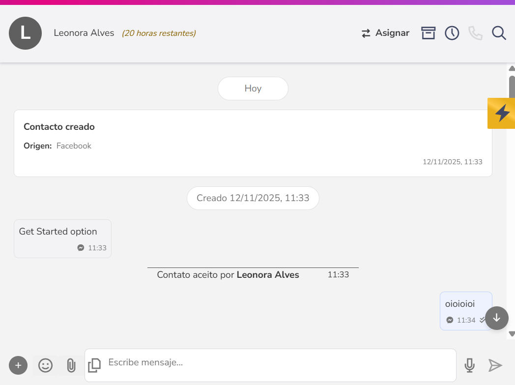 - Cuando el agente inicia la atención, enviando el primer mensaje;