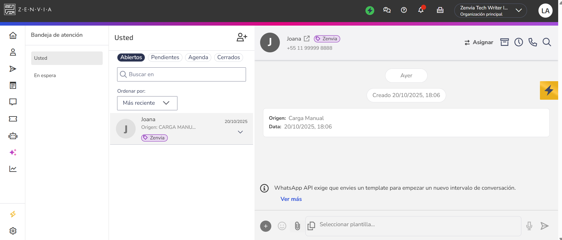 Ventas: Las etiquetas aplicadas a los contactos son visibles para los agentes durante las conversaciones, ayudando en la identificación rápida del perfil o estado del cliente (como "VIP" o "En negociación").