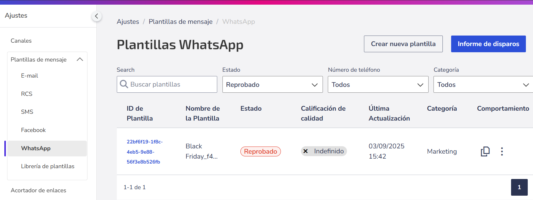 1. Vaya a Ajustes > Plantillas de mensaje > WhatsApp.