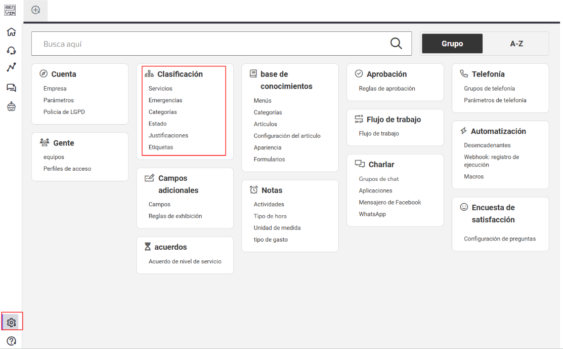 La configuración de la Clasificación es uno de los pasos iniciales para el uso del módulo de Atención de Soporte en Zenvia Customer Cloud.