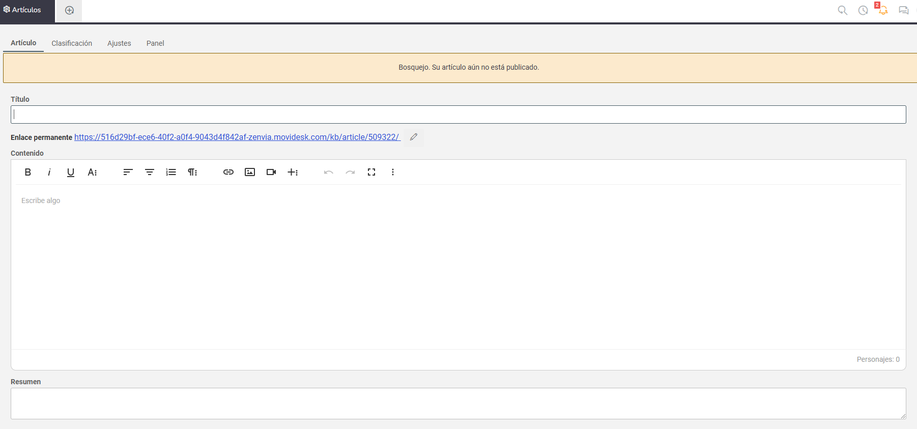 En Artículos, puedes crear y editar contenidos que ayudan a resolver problemas o aclarar dudas de los usuarios.