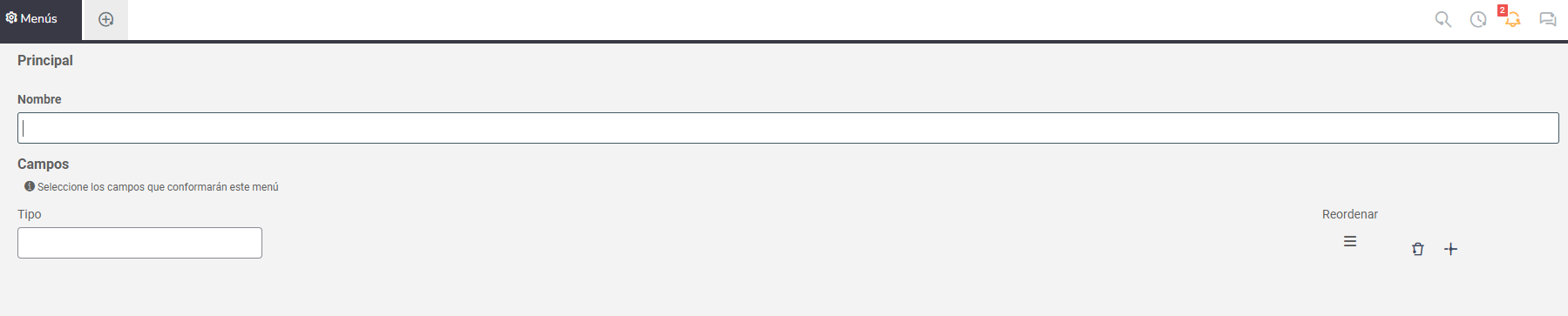 2. Ingrese un nombre que defina el tipo de menú deseado;