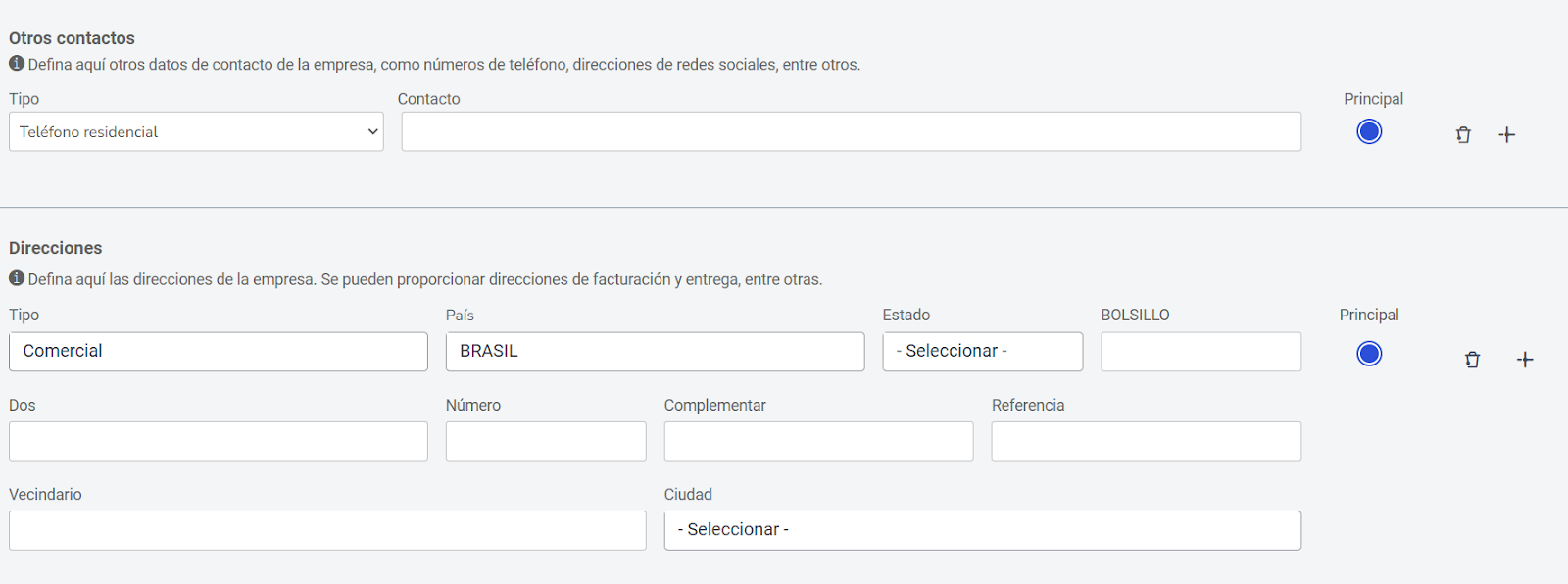 💡Tip: Es posible registrar una dirección principal y una secundaria, si es necesario.