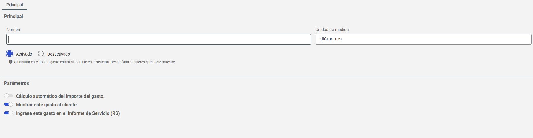 6. Elija si el gasto será mostrado al cliente y si aparecerá en el Reporte de Servicio;