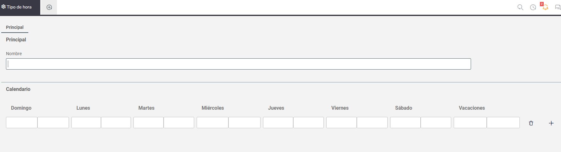 Defina diferentes tipos de horas para cubrir períodos variados del día, ajustando las horas según su modelo de negocio. De forma predeterminada, existen los tipos Normal y Extra, pero se pueden agregar y personalizar nuevos tipos.