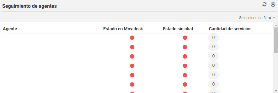 Aquí se controla el estado de los agentes en tiempo real, comprobando que están activos en el sistema y disponibles para la asistencia por chat.