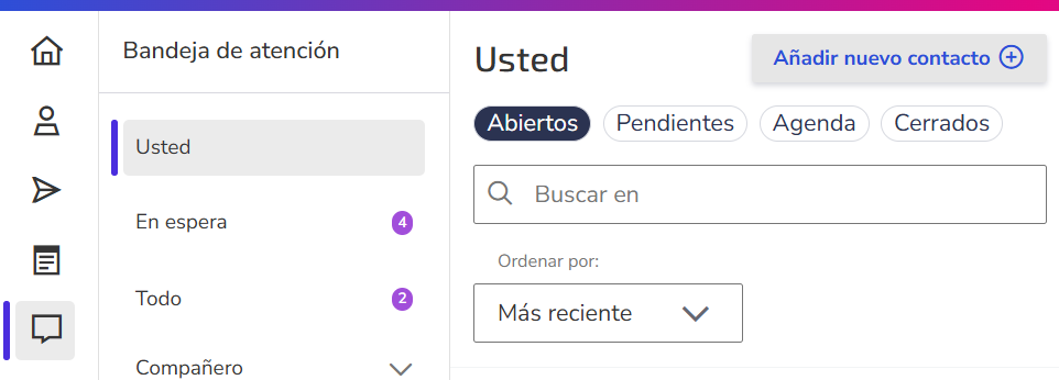 Otra forma de agregar contactos manualmente es desde la Bandeja de atención: