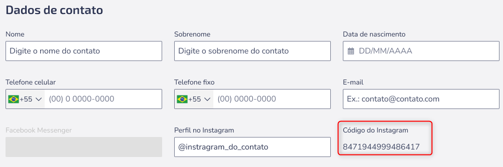 - Teléfonos (móvil y fijo): Solo números, en el formato DDI + DDD + número (ejemplo: +55 11 91234-5678).