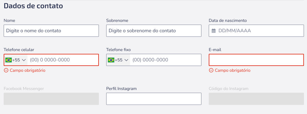 - Teléfonos (móvil y fijo): Solo números, en el formato DDI + DDD + número (ejemplo: +55 11 91234-5678).