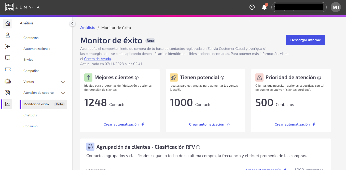 - Exporta tus contactos desde Zenvia Customer Cloud para análisis y uso externo.