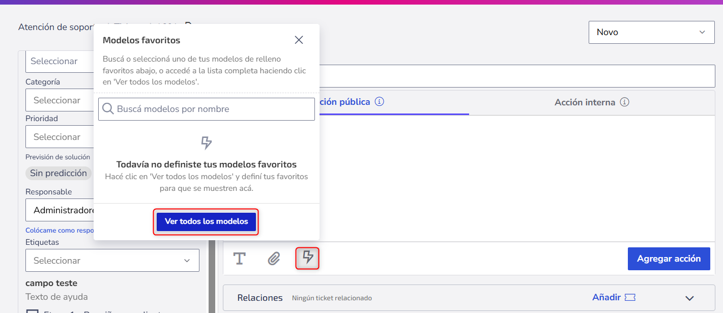 Después de crear las plantillas, usted puede aplicarlas directamente en un ticket: