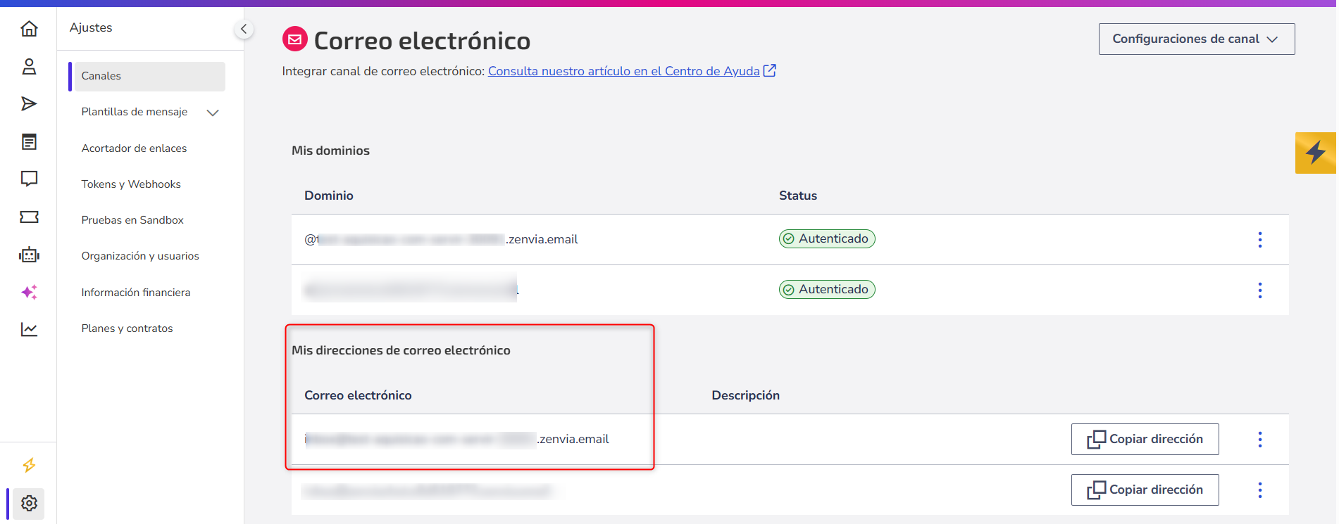 El dominio utilizado en el envío debe ser el mismo dominio vinculado al canal de correo electrónico configurado para atención de soporte. Esto garantiza que, cuando el cliente responda al correo electrónico, el sistema realice la derivación automática al soporte.