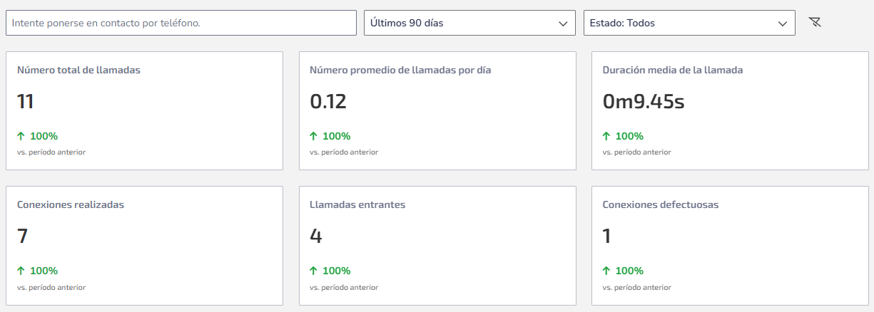 Todos: Muestra todas las llamadas registradas en el período seleccionado, independientemente del resultado.